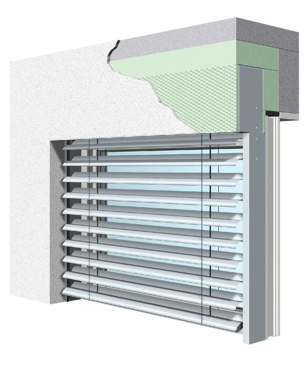 Fenster-System-Außenjalousien lassen sich unauffällig oder als sichtbares Element in die Fassade integrieren. Da sich die Anlagen nahtlos in Wärmedämmverbundsysteme (WDVS) einfügen, erfüllen diese Außenjalousien problemlos die kontinuierlich steigenden ärmeschutzanforderungen. Neben klassischen Führungsprofilen sind auch Fenster-System-Außenjalousien mit filigraner Seilführung der einer Seil-/Schienenkombination möglich.