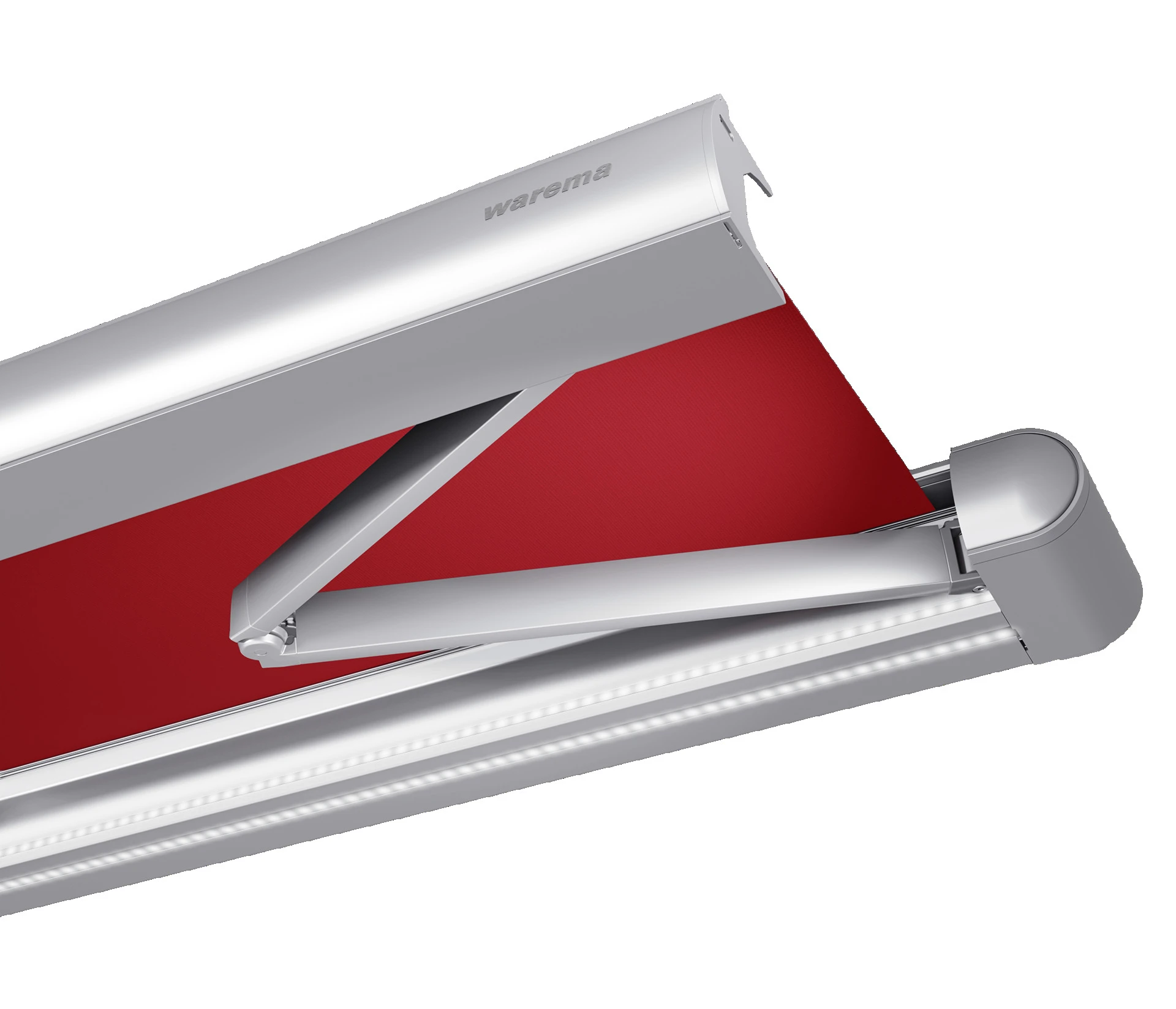 Nahaufnahme einer Warema Markise mit CE-Kennzeichnung